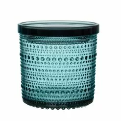Beautiful storage jar designed by Oiva Toikka for Iittala. This particular series is one of the brands most popular and has become a classic since it was born in 1964. A fantastic series of small glass beads that have been inspired by dew drops. Fits food as well as jewelry storage.