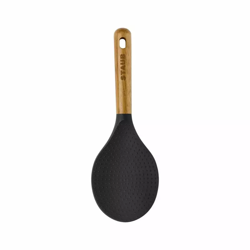 – Gemaakt van siliconen en acaciahout.